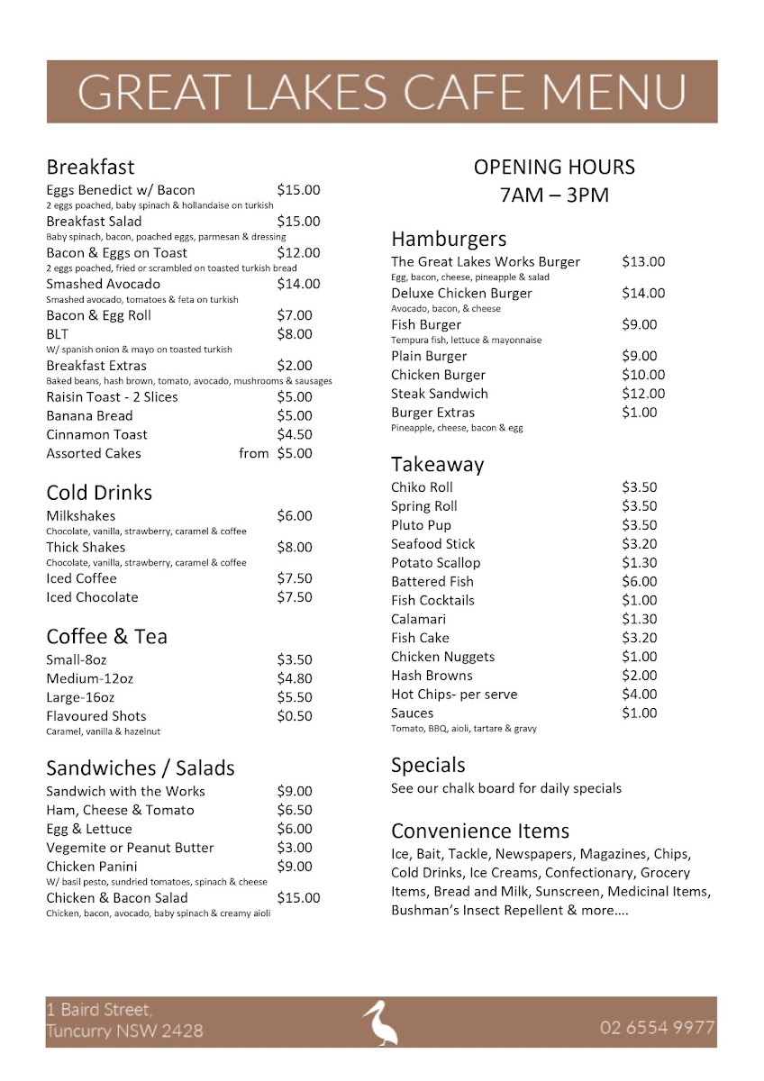 If you find yourself wandering the beautiful coastal town of Tuncurry, NSW, a visit to Great Lakes Cafe is a must. This local gem, nestled at 3 Baird St, offers a delightful blend of classic café fare and a warm, welcoming atmosphere that makes it the perfect spot for breakfast or a casual lunch break.